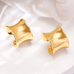 These 18KT gold-plated bold hoop earrings showcase a sleek and modern design. Made from stainless steel, they are tarnish-free, waterproof, and add a touch of sophistication to any look. Material & Care Dimension : Length : 2 cm ; Width : 1.5 cm Material : Stainless Steel Care Label : It is advisable to avoid contact with water and organic chemicals i.e. perfume sprays. Store jewellery in airtight box. After use, wipe the jewellery with soft cotton cloth.