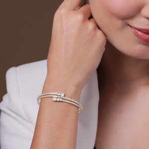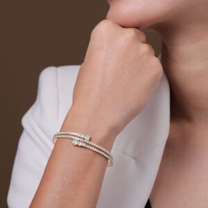 Bracelet : Gold-toned and white bangle-style bracelet Material and stone type: brass with american diamond Plating: gold-plated Closure: slip-on Occasion : Bring your style to a whole new level with this handcrafted piece of jewellery. When you’re celebrating a special Occasion : – a birthday, wedding, or personal milestone – this piece adds that extra something that makes us feel special and looking our best. Material : & Care Dimension : Size : Length : 2.4 cm, Width : 1 cm Material :Brass Care Label : It is advisable to avoid contact with water and organic chemicals i.e. perfume sprays. Store jewellery in airtight box. After use, wipe the jewellery with soft cotton cloth.