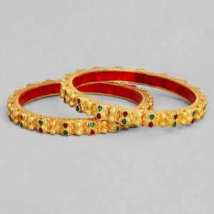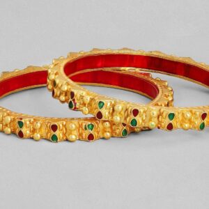 Adorn your wrist with finest handcrafted gold plated bangles studded with faux¬†Enamel Painted Pair it up and flaunt with your ethnic attire. Occasion : Bring your style to a whole new level with this handcrafted piece of jewellery. When you’re celebrating a special Occasion : – a birthday, wedding, or personal milestone – this piece adds that extra something that makes us feel special and looking our best. Material : & Care Material :Alloy Plating : Gold Plated Care Label : It is advisable to avoid contact with water and organic chemicals i.e. perfume sprays. Store jewellery in airtight box. After use, wipe the jewellery with soft cotton cloth.