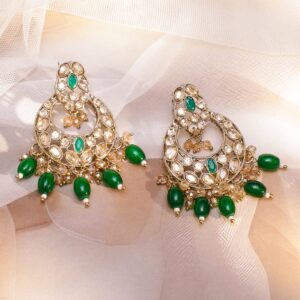Be the first to review “22K Gold-Plated Handcrafted White & Green Kundan Studded Necklace Set with Green Drop Beads & Off-White Pearl Beads”