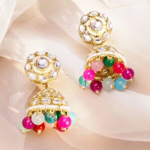 Be the first to review “22K Gold-Plated Handcrafted White Kundan & Cubic Zirconia Studded Double Layer Necklace Set with Multi-Colored Beads”
