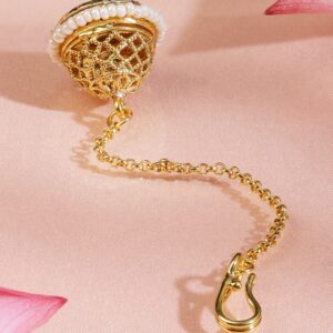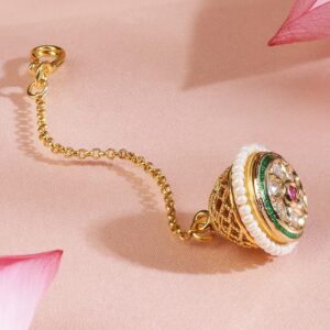 This 22K gold-plated floral borla maang tikka features kundan petals, a ruby pink center stone, green enamel edge, and a pearl beaded border—ideal for bridal and festive elegance. Occasion : Bring your style to a whole new level with this handcrafted piece of jewellery. When you’re celebrating a special Occasion : – a birthday, wedding, festive or personal milestone – this piece adds that extra something that makes us feel special and looking our best. Material & Care Dimension: Length: 10cm ; Width: 1.5 cm Net Weight: 7.68 Gram Material : Brass Net Quantity : 1 Borla MaangTikka Care Label : It is advisable to avoid contact with water and organic chemicals i.e. perfume sprays. Store jewellery in airtight box. After use, wipe the jewellery with soft cotton cloth.