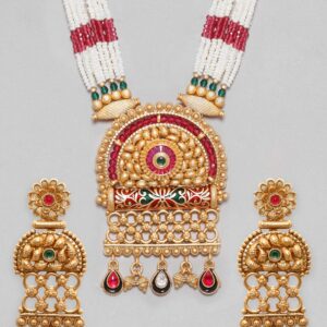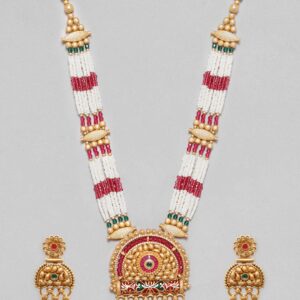 Be the first to review “22K Gold Plated Red & Green Enamel Pearl Beaded Necklace Set – Gold”