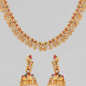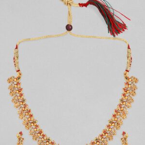 Be the first to review “22K Gold-Plated Red & Green Stone Studded Handcrafted Traditional Temple Jewellery Set – Gold”