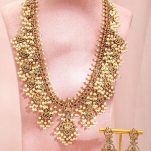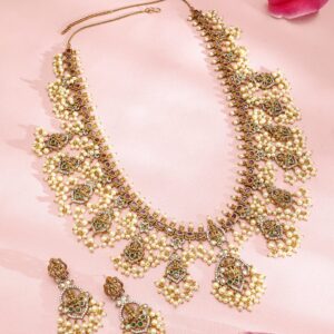 Necklace Set : Discover elegance with the Gold-Plated design, meticulously crafted for those who cherish luxury. This piece features precious stones for an eye-catching sparkle, making it perfect for special occasions. With a blend of high-quality materials and exquisite design, it promises both durability and style. The versatile look can complement a variety of outfits, adding a touch of sophistication. A must-have for enhancing your accessory collection with timeless elegance. Occasion : Bring your style to a whole new level with this handcrafted piece of jewellery. When you’re celebrating a special Occasion : – a birthday, wedding, or personal milestone – this piece adds that extra something that makes us feel special and looking our best. Material : & Care Dimension : Length : 60 cm / 6 cm , Width: 6 cm / 2 cm Material :Brass Care Label : It is advisable to avoid contact with water and organic chemicals i.e. perfume sprays. Store jewellery in airtight box. After use, wipe the jewellery with soft cotton cloth.