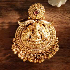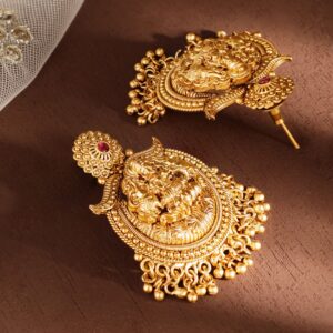 Adorn yourself in Timeless Elegance with our 22k Gold-Plated Temple Chandbali Earrings. The intricate temple-inspired design and classic chandbali shape add regal charm to any ensemble. Elevate your style with these statement earrings, a perfect blend of cultural heritage and sophistication. Material & Care Dimension :Length : 4.5 cm ; Width: 3.5 cm Material : Brass Care Label : It is advisable to avoid contact with water and organic chemicals i.e. perfume sprays. Store jewellery in airtight box. After use, wipe the jewellery with soft cotton cloth.