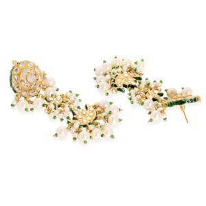22k Gold plated triple layer pearl beaded kundan studded Jewellery Set – Gold