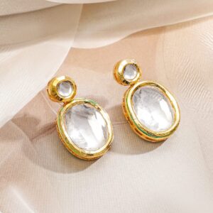 This elegant 22K gold-plated choker set features handcrafted white kundan stones with a bold, collar-style silhouette, perfect for weddings, festive occasions, and ethnic celebrations. Occasion : Bring your style to a whole new level with this handcrafted piece of jewellery. When you’re celebrating a special Occasion : – a birthday, wedding, festive or personal milestone – this piece adds that extra something that makes us feel special and looking our best. Material & Care Dimension : Necklace Length = 20 cm ; Earrings Length = 3 cm Necklace Width = 2.5 cm ; Earrings Width = 1.8 cm Net Weight : 51.34 Gram Material : Brass Plating : Gold Plating Collection : Kundan Net Quantity: 1 Necklace and 1 Pair of Earrings Care Label: It is advisable to avoid contact with water and organic chemicals i.e. perfume sprays. Store jewellery in airtight box. After use, wipe the jewellery with soft cotton cloth.