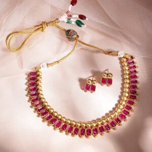 Jewellery Set: One of the most versatile forms of ornate designs that goes well with every style and personality. Wear one of these and you do not have to worry about any other accessory. Occasion : Bring your style to a whole new level with this handcrafted piece of jewellery. When you’re celebrating a special Occasion : – a birthday, wedding, or personal milestone – this piece adds that extra something that makes us feel special and looking our best. Material : & Care Material: Alloy Net Weight: 32.48 Gram Net Quantity: 1 Necklace & 1 Pair of Earrings Care Label: It is advisable to avoid contact with water and organic chemicals i.e. perfume sprays. Store jewellery in airtight box. After use, wipe the jewellery with soft cotton cloth.