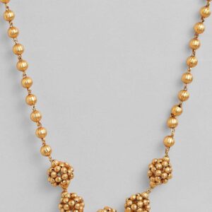It’s a jewellery set fit for the queens! Exude the royal vibe with this stone studded jewellery set. Consisting of a necklace, matching earrings, this necklace set is crafted from gold-plated brass, stones and beads. Occasion : Bring your style to a whole new level with this handcrafted piece of jewellery. When you’re celebrating a special Occasion : – a birthday, wedding, or personal milestone – this piece adds that extra something that makes us feel special and looking our best. Material & Care Dimension :Necklace 63 cm Material : Brass Care Label : It is advisable to avoid contact with water and organic chemicals i.e. perfume sprays. Store jewellery in airtight box. After use, wipe the jewellery with soft cotton cloth