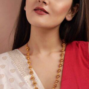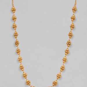 It’s a jewellery set fit for the queens! Exude the royal vibe with this stone studded jewellery set. Consisting of a necklace, matching earrings, this necklace set is crafted from gold-plated brass, stones and beads. Occasion : Bring your style to a whole new level with this handcrafted piece of jewellery. When you’re celebrating a special Occasion : – a birthday, wedding, festive or personal milestone – this piece adds that extra something that makes us feel special and looking our best. Material & Care Dimension :Necklace 60 cm Material : Brass Net Quantity: 1 Necklace Care Label : It is advisable to avoid contact with water and organic chemicals i.e. perfume sprays. Store jewellery in airtight box. After use, wipe the jewellery with soft cotton cloth