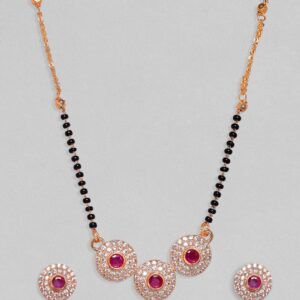 Sometimes a necklace makes an outfit. At times its just a classic design for everyday wear Occasion : Bring your style to a whole new level with this handcrafted piece of jewellery. When you’re celebrating a special Occasion : – a birthday, wedding, or personal milestone – this piece adds that extra something that makes us feel special and looking our best. Material & Care Dimension :Mangalsutra 45 cm Bracelet: 20 cm Material : Brass Collection : AD(Gold) Weight : 15g Net Qnty : 1 Mangalsutra Care Label : It is advisable to avoid contact with water and organic chemicals i.e. perfume sprays. Store jewellery in airtight box. After use, wipe the jewellery with soft cotton cloth.