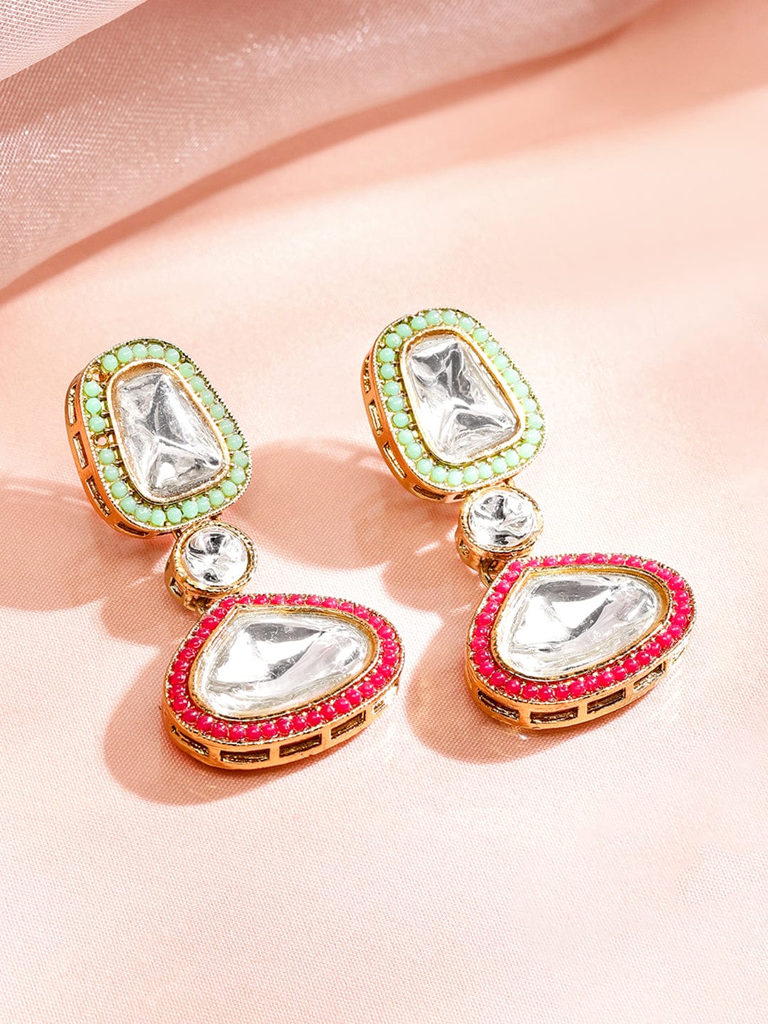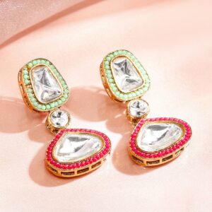 Make a regal statement with this 24K gold-plated handcrafted necklace set, featuring multicolor Kundan stones in a layered design with matching earrings, perfect for weddings & festive occasions. Occasion : Bring your style to a whole new level with this handcrafted piece of jewellery. When you’re celebrating a special Occasion : – wedding, festive or personal milestone – this piece adds that extra something that makes us feel special and looking our best. Material : & Care Dimension : Length : Neckace : 30 cm, Earrings : 4.5 cm Net Weight: 130 g Net Quantity : 1 Necklace & 1 Pair of Earrings Material : Brass Care Label : It is advisable to avoid contact with water and organic chemicals i.e. perfume sprays. Store jewellery in airtight box. After use, wipe the jewellery with soft cotton cloth.