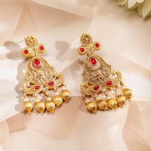 It’s a jewellery set fit for the queens! Exude the royal vibe with this stone studded jewellery set. Consisting of a necklace, matching earrings, this necklace set is crafted from gold-plated brass, stones and beads. Occasion : Bring your style to a whole new level with this handcrafted piece of jewellery. When you’re celebrating a special Occasion : – a birthday, wedding, festive or personal milestone – this piece adds that extra something that makes us feel special and looking our best. Material & Care Dimension : ¬† Necklace: 36 cm; Earrings: 8 cm Material :¬†Brass Collection : Gold Tone Care Label : ¬† It is advisable to avoid contact with water and organic chemicals i.e. perfume sprays. Store jewellery in airtight box. After use, wipe the jewellery with soft cotton cloth.