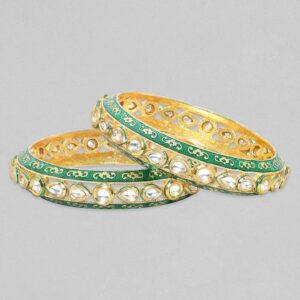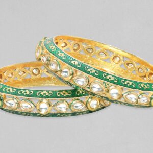 Adorn your wrist with finest rose gold plated bangles studded with zirconia stones. Pair it up and flaunt with your western attire. Occasion : Bring your style to a whole new level with this handcrafted piece of jewellery. When you’re celebrating a special Occasion : – a birthday, wedding, or personal milestone – this piece adds that extra something that makes us feel special and looking our best. Material & Care Material : Brass Collection : Gold Tone Care Label : It is advisable to avoid contact with water and organic chemicals i.e. perfume sprays. Store jewellery in airtight box. After use, wipe the jewellery with soft cotton cloth.
