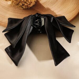 Black Satin Layered Bow Hair Clip – Elegant & Stylish Statement Hair Accessory – Black