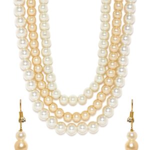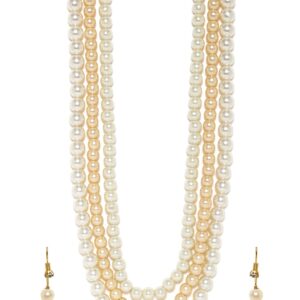 The fusion of elements exudes opulence and sophistication, perfect for enhancing your style. Embrace the captivating allure of this set, allowing the peacock motif, Kemp, Zirconia crystals, and pearls to grace your ensemble with a touch of refined beauty. Let the 22K gold plating and intricate craftsmanship create an aura of timeless charm and exquisite allure, making a statement of grandeur and artistic grace inspired by the captivating peacock. Occasion : Bring your style to a whole new level with this handcrafted piece of jewellery. When you’re celebrating a special Occasion : – a birthday, wedding, or personal milestone – this piece adds that extra something that makes us feel special and looking our best. Material & Care Dimension : Necklace : 48 cm Earrings : 4.5 cm Material : Brass Weight : 121.38g Net Qnty : 1 Necklace, 1 Pair of Earrings Care Label : It is advisable to avoid contact with water and organic chemicals i.e. perfume sprays. Store jewellery in airtight box. After use, wipe the jewellery with soft