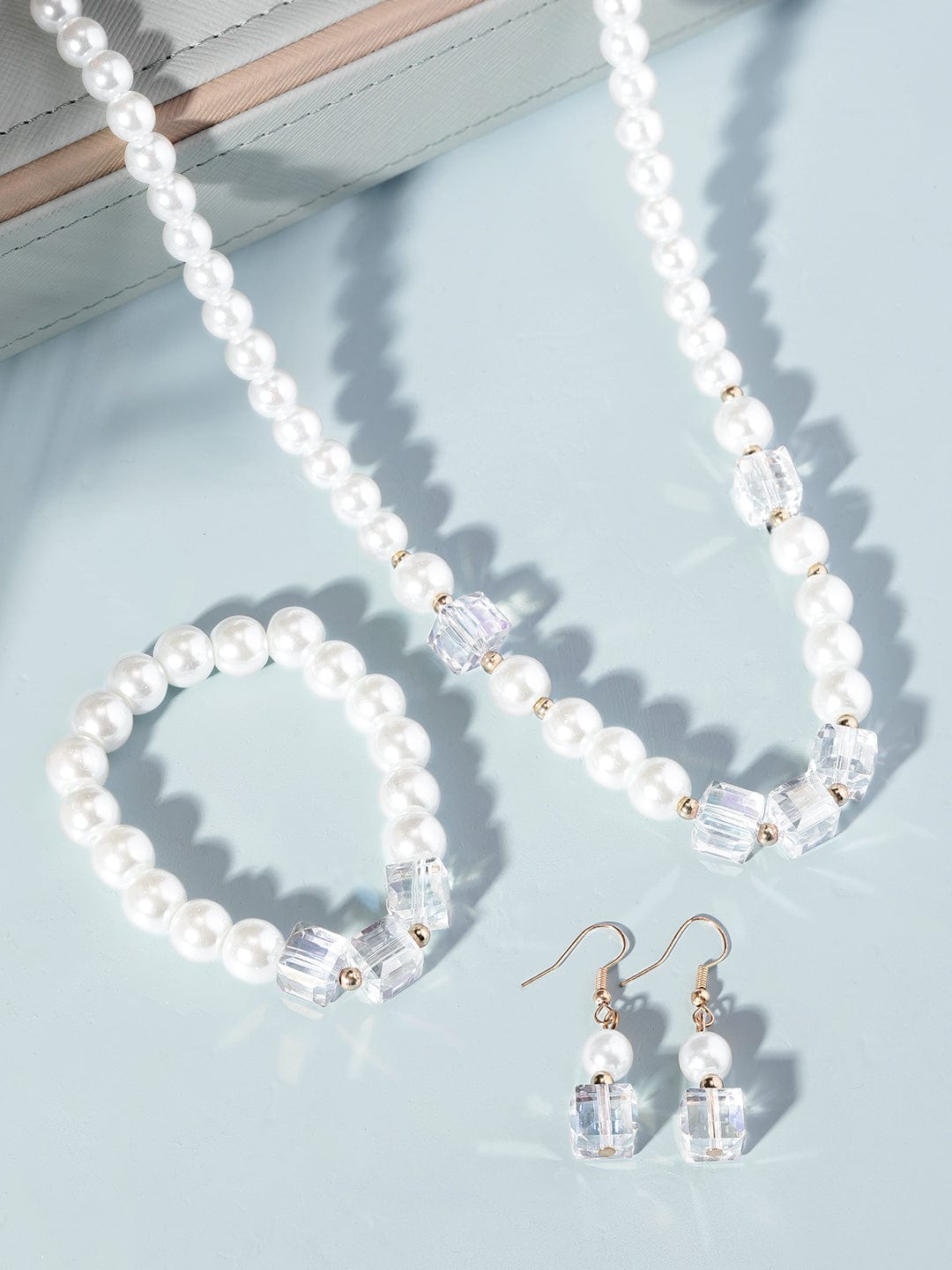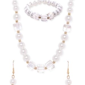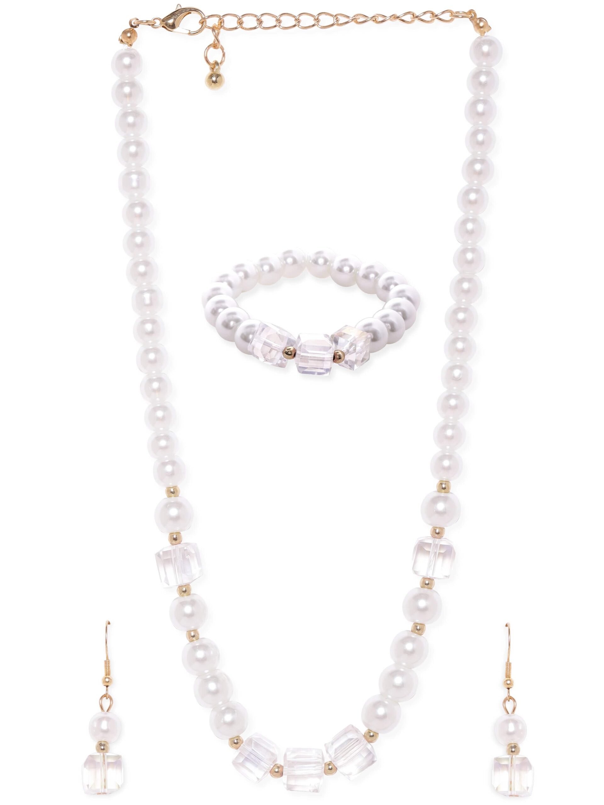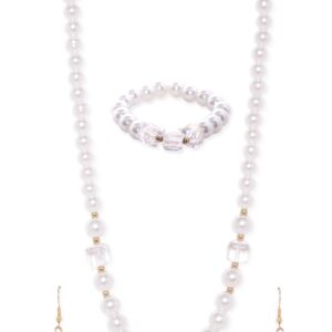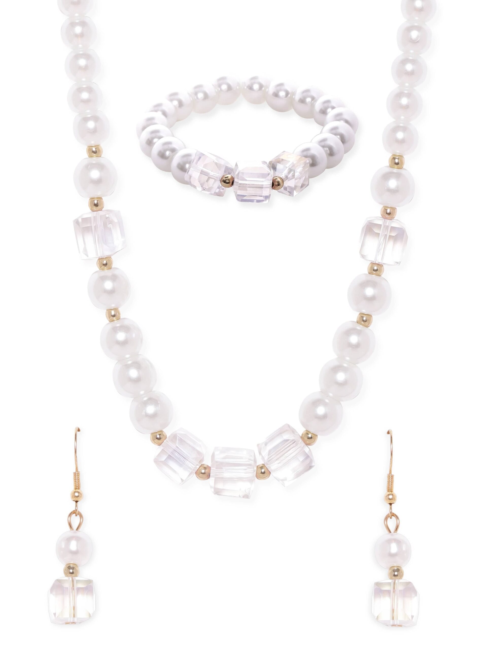 Cream Pearl & Crystal Beaded Classy Necklace Set – Cream