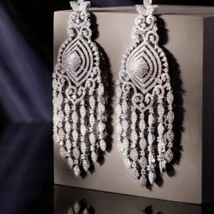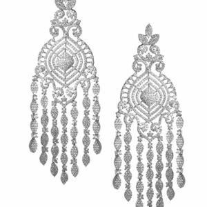 Embrace the enchantment of these rhodium plated chandelier earrings, adorned with captivating zirconia stones. The rhodium plating adds a touch of elegance, while the meticulously placed gemstones exude timeless allure. Material & Care Dimension : 3.5 cm Material: Brass Net Weight: 51.2 Gram Net Quantity: 1 Pair of Earrings Care Label: It is advisable to avoid contact with water and organic chemicals i.e. perfume sprays. Store jewellery in airtight box. After use, wipe the jewellery with soft cotton cloth.