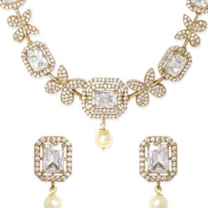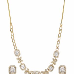 Gold-Plated Beaded Jewellery Set is a beautiful and elegant set of jewelry that is perfect for any occasion. The set includes a necklace, earrings, and a bracelet, all of which are made with high-quality gold plating and sparkling beads. The necklace is the centerpiece of the set, and it features a delicate and intricate design. The beads are strung together to create a variety of shapes and patterns, including flowers, leaves, and geometric designs. The necklace is also adjustable, so it can be worn at the perfect length for your neckline. Material & Care Dimension : Necklace : 23 cm Earrings : 2 cm Material: Brass Net Weight: 27.18 Gram Net Quantity: 1 Necklace & 1 Pair of Earrings Care Label: It is advisable to avoid contact with water and organic chemicals i.e. perfume sprays. Store jewellery in airtight box. After use, wipe the jewellery with soft cotton cloth.