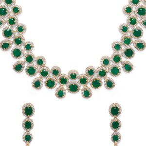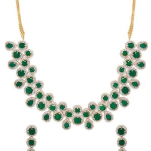 It’s a jewellery set fit for the queens! Exude the royal vibe with this stone studded jewellery set. Consisting of a necklace, matching earrings, this necklace set is crafted from gold-plated brass, stones and beads. Occasion : Bring your style to a whole new level with this handcrafted piece of jewellery. When you’re celebrating a special Occasion : – a birthday, wedding, or personal milestone – this piece adds that extra something that makes us feel special and looking our best. Material : & Care Dimension : Necklace -¬† 11.2 cm ,Earrings- 4.6 cm Material : ¬†Copper Care Label : It is advisable to avoid contact with water and organic chemicals i.e. perfume sprays. Store jewellery in airtight box. After use, wipe the jewellery with soft cotton cloth
