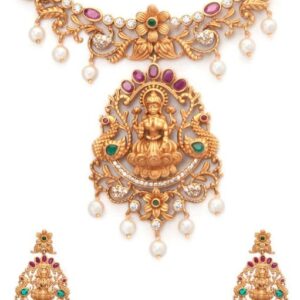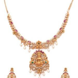 Be the first to review “Gold-Plated multicolor CZ studded temple Jewellery Set – Gold”