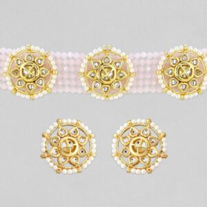 Necklace Set : This exquisite pink is crafted from gold-plated material and showcases beaded jewellery details. The elegant stone-studded color adds a timeless touch, perfect for special occasions. Complete your look with this stunning piece. Occasion : Bring your style to a whole new level with this handcrafted piece of jewellery. When you’re celebrating a special Occasion : – a birthday, wedding, or personal milestone – this piece adds that extra something that makes us feel special and looking our best. Material : & Care Dimension : Size: Necklace : 24.4 cm , Earring : 3.3 cm Material: Brass Net Weight: 45 Gram Net Quantity: 1 Necklace & 1 Pair of Earrings Care Label: It is advisable to avoid contact with water and organic chemicals i.e. perfume sprays. Store jewellery in airtight box. After use, wipe the jewellery with soft cotton cloth.