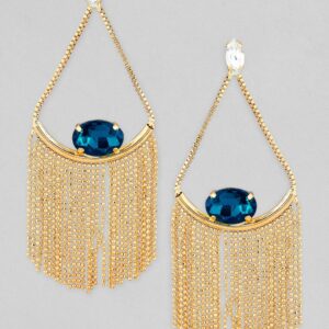 Chic and modern, these Gold-Toned Drop Earrings feature stunning blue crystal studs for a touch of elegance and style Occasion : Bring your style to a whole new level with this handcrafted piece of jewellery. When you’re celebrating a special Occasion : – a birthday, wedding, or personal milestone – this piece adds that extra something that makes us feel special and looking our best. Material & Care Length : 9 cm Material : Brass Weight : 17g Net Qnty : 1 Pair Earrings Care Label : It is advisable to avoid contact with water and organic chemicals i.e. perfume sprays. Store jewellery in airtight box. After use, wipe the jewellery with soft cotton cloth.