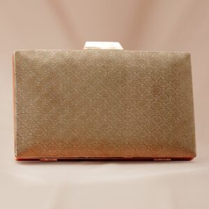 Box Clutch : gold-toned embossed box clutch with metallic frame, snap closure, and roomy interior, perfect for weddings, parties, and festive celebrations. Elegant & Functional: Lightweight design with a chic silhouette, making it an ideal statement accessory for women and girls. Material & Care Dimension : Length : 20 cm , Width : 16 cm Material : Brass Weight : 300 Gram Net Qnty : 1 Bag Care Label : It is advisable to avoid contact with water and organic chemicals i.e. perfume sprays. Store jewellery in airtight box. After use, wipe the jewellery with soft cotton cloth.