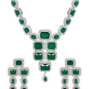 It’s a jewellery set fit for the queens! Exude the royal vibe with this stone studded jewellery set. Consisting of a necklace, matching earrings, this necklace set is crafted from Silver-plated brass, and stones . Occasion : Bring your style to a whole new level with this handcrafted piece of jewellery. When you’re celebrating a special Occasion : – a birthday, wedding, or personal milestone – this piece adds that extra something that makes us feel special and looking our best. Material : & Care Dimension : Necklace 18.5 cm ,Earrings- 6.3 cm Material : Copper Care Label : It is advisable to avoid contact with water and organic chemicals i.e. perfume sprays. Store jewellery in airtight box. After use, wipe the jewellery with soft cotton cloth