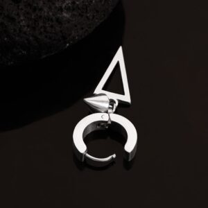Earrings : Make a bold statement with this men’s stainless steel geometric earring, featuring a unique angular charm and a polished silver-plated finish. Tarnish-free and waterproof for enduring style. Occasion : Bring your style to a whole new level with this handcrafted piece of jewellery. When you’re celebrating a special Occasion : – a birthday, wedding, or personal milestone – this piece adds that extra something that makes us feel special and looking our best. Material : & Care Dimension : Size : Length : 3.5 cm, Width : 1 cm Material :Stainless Steel Net Weight: 3.1 Gram Net Quantity: 1 Earrings Care Label : It is advisable to avoid contact with water and organic chemicals i.e. perfume sprays. Store jewellery in airtight box. After use, wipe the jewellery with soft cotton cloth.