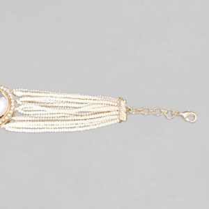 Adorn your wrist with finest gold plated bracelets studded with zirconia stones. Pair it up and flaunt with your western attire. Occasion : Bring your style to a whole new level with this handcrafted piece of jewellery. When you’re celebrating a special Occasion : – a birthday, wedding, or personal milestone – this piece adds that extra something that makes us feel special and looking our best. Material & Care Dimension : Length 15 cm; Width 2.9 cm: Material : Brass Collection : Kundan(Gold) Care Label : It is advisable to avoid contact with water and organic chemicals i.e. perfume sprays. Store jewellery in airtight box. After use, wipe the jewellery with soft cotton cloth.