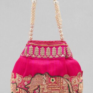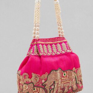 potli bag with the embellishment of stones and elegant designs to add up to your look while adding the extra shine to the moment. Carry it and complete your look with this timeless classic accessory by . Material & Care Height: 17 cm Width: 18 cm Depth: 8 cm Material : Fabric