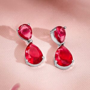Jewellery Set : This exquisite jewelry set features a stunning rhodium-plated finish adorned with rich ruby red stones. The necklace and matching earrings are designed in a sophisticated teardrop and round-cut style, perfect for adding a touch of elegance and glamour to any look. Occasion : Bring your style to a whole new level with this handcrafted piece of jewellery. When you’re celebrating a special Occasion : – a birthday, wedding, or personal milestone – this piece adds that extra something that makes us feel special and looking our best. Material : & Care Dimension : Size : Necklace : 12.5 cm, Earrings : 2.5 cm Material :Brass Care Label : It is advisable to avoid contact with water and organic chemicals i.e. perfume sprays. Store jewellery in airtight box. After use, wipe the jewellery with soft cotton cloth.