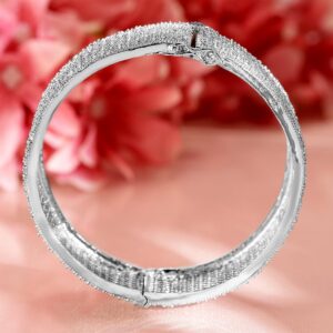 Bracelet : This exquisite piece, ‘ Women Brass Cubic Zirconia Rhodium-Plated Bangle-Style Bracelet’, is a perfect blend of elegance and craftsmanship. Designed to captivate, it reflects timeless beauty and intricate detailing. Ideal for special occasions, this accessory adds a touch of sophistication to your look. Made with high-quality materials, it guarantees durability and comfort. Elevate your style with this stunning creation, making you stand out effortlessly. Occasion : Bring your style to a whole new level with this handcrafted piece of jewellery. When you’re celebrating a special Occasion : – a birthday, wedding, or personal milestone – this piece adds that extra something that makes us feel special and looking our best. Material : & Care Material: Brass Net Weight: 43.67 Gram Net Quantity: 1 Bracelet Care Label : It is advisable to avoid contact with water and organic chemicals i.e. perfume sprays. Store jewellery in airtight box. After use, wipe the jewellery with soft cotton cloth.