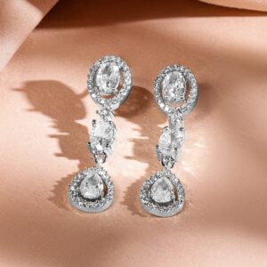 Jewellery Set : A rhodium-plated luxe statement jewellery set, adorned with blue sapphire stones and AAA cubic zirconia in a silver-tone finish. Ideal for weddings, grand celebrations & special occasions. Occasion : Bring your style to a whole new level with this handcrafted piece of jewellery. When you’re celebrating a special Occasion : – a birthday, wedding, festive or personal milestone – this piece adds that extra something that makes us feel special and looking our best. Material & Care Dimension : Length : Necklace : 16 cm, Earrings : 4 cm Dimension : Width : Necklace : 2 cm, Earrings : 1 cm Net Weight : 34.74 Gram Net Quantity : 1 Necklace & 1 Pair of Earrings Material : Brass Care Label : It is advisable to avoid contact with water and organic chemicals i.e. perfume sprays. Store jewellery in airtight box. After use, wipe the jewellery with soft cotton cloth.