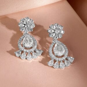 Jewellery Set : This rhodium-plated necklace set features dazzling AD and cubic zirconia stones with intricate detailing, complete with matching earrings for a luxurious and elegant look. Occasion : Bring your style to a whole new level with this handcrafted piece of jewellery. When you’re celebrating a special Occasion : – a birthday, wedding, or personal milestone – this piece adds that extra something that makes us feel special and looking our best. Material : & Care Dimension : Length : NS-21 ; E- 3.2 cm, Width: NS- 2.5 ; E- 1.2 W Net Quantity : 1 Necklace & 2 Earrings Net Weight: 36.20 g Material :Brass Care Label : It is advisable to avoid contact with water and organic chemicals i.e. perfume sprays. Store jewellery in airtight box. After use, wipe the jewellery with soft cotton cloth.