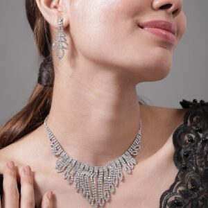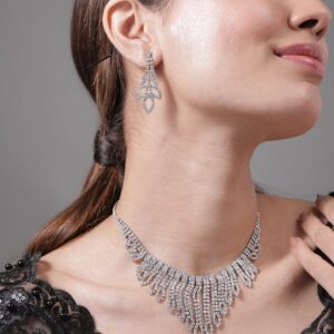 Jewellery Set: One of the most versatile forms of ornate designs that goes well with every style and personality. Wear one of these and you do not have to worry about any other accessory. Occasion : Bring your style to a whole new level with this handcrafted piece of jewellery. When you’re celebrating a special Occasion : – a birthday, wedding, or personal milestone – this piece adds that extra something that makes us feel special and looking our best. Material & Care Dimension : Necklace – 22 cm, Earrings – 5 cm Material : Brass Care Label : It is advisable to avoid contact with water and organic chemicals i.e. perfume sprays. Store jewellery in airtight box. After use, wipe the jewellery with soft cotton cloth.