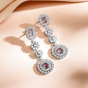 This rhodium-plated necklace set features amethyst purple stones and AAA cubic zirconia in a luxe silver tone finish, complete with matching statement earrings—perfect for special occasions and elegant parties for women & girls. Occasion : Bring your style to a whole new level with this handcrafted piece of jewellery. When you’re celebrating a special Occasion : – a birthday, wedding, festive, parties or personal milestone – this piece adds that extra something that makes us feel special and looking our best. Material & Care Dimension : Length : Necklace : 17 cm, Earrings : 2 cm Width : Necklace : 5 cm, Earrings : 1.5 cm Net Weight: 36.09 g Net Quantity : 1 Necklace & 1 Pair of Earrings Material : Brass Care Label : It is advisable to avoid contact with water and organic chemicals i.e. perfume sprays. Store jewellery in airtight box. After use, wipe the jewellery with soft cotton cloth.