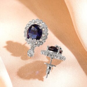 Earrings : These rhodium-plated earrings feature a regal blue sapphire centerpiece with white Cubic Zirconia and drop detailing—ideal for festive evenings, special occasions, and sophisticated styling. Perfect for Occasions: Ideal for festive celebrations, cocktail evenings, and traditional events, these earrings enhance sarees, gowns, and Indo-western styles with a high-glam touch. Material : & Care Dimension : Length : 2.5 ; Width: 1 cm Net Weight: 7.90 Gram Net Quantity : 1 Pair Of Earrings Material : Brass Care Label : It is advisable to avoid contact with water and organic chemicals i.e. perfume sprays. Store jewellery in airtight box. After use, wipe the jewellery with soft cotton cloth.