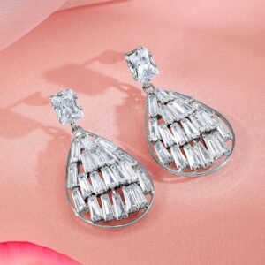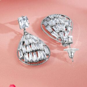 Earrings : Stylish rhodium-plated earrings with dazzling cubic zirconia drops, perfect for making a statement. Occasion : Bring your style to a whole new level with this handcrafted piece of jewellery. When you’re celebrating a special Occasion : – a birthday, wedding, or personal milestone – this piece adds that extra something that makes us feel special and looking our best. Material : & Care Dimension : Length : 4.4 cm, Width: 2.2 cm Net Weight: 18.19 g Net Quantity : 1 Pair Of Earrings Material :Brass Care Label : It is advisable to avoid contact with water and organic chemicals i.e. perfume sprays. Store jewellery in airtight box. After use, wipe the jewellery with soft cotton cloth.