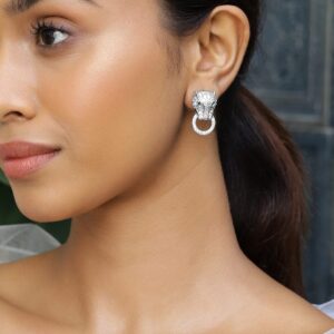 Earrings : Fierce and stylish, these rhodium-plated stud earrings showcase a panther design studded with cubic zirconia and emerald-like green accents for bold sophistication. Occasion : Bring your style to a whole new level with this handcrafted piece of jewellery. When you’re celebrating a special Occasion : – a birthday, wedding, or personal milestone – this piece adds that extra something that makes us feel special and looking our best. Material : & Care Dimension : Length : 2.5 cm, Width: 1.5 cm Net Weight: 11.10 g Net Quantity : 1 Pair Of Earrings Material :Brass Care Label : It is advisable to avoid contact with water and organic chemicals i.e. perfume sprays. Store jewellery in airtight box. After use, wipe the jewellery with soft cotton cloth.