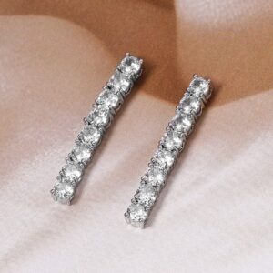 Earrings : Add a touch of sophistication to your ensemble with these stunning rhodium-plated linear earrings. Featuring a sleek and elegant design, these earrings are expertly studded with shimmering cubic zirconia that catch the light beautifully. Perfect for elevating any outfit, these earrings combine modern style with timeless elegance, making them a versatile addition to your jewelry collection. Designed to offer both comfort and glamour, these linear earrings are ideal for adding a refined sparkle to your look. Occasion : Bring your style to a whole new level with this handcrafted piece of jewellery. When you’re celebrating a special Occasion : – a birthday, wedding, or personal milestone – this piece adds that extra something that makes us feel special and looking our best. Material : & Care Dimension : Size : Length : 3.2 cm, Width : 0.5 cm Material :Brass Care Label : It is advisable to avoid contact with water and organic chemicals i.e. perfume sprays. Store jewellery in airtight box. After use, wipe the jewellery with soft cotton cloth.