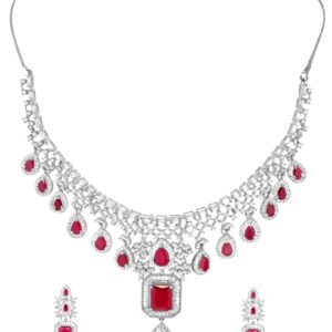 Necklace Set : Discover elegance with the Rhodium-Plated design, meticulously crafted for those who cherish luxury. This piece features precious stones for an eye-catching sparkle, making it perfect for special occasions. With a blend of high-quality materials and exquisite design, it promises both durability and style. The versatile look can complement a variety of outfits, adding a touch of sophistication. A must-have for enhancing your accessory collection with timeless elegance. Occasion : Bring your style to a whole new level with this handcrafted piece of jewellery. When you’re celebrating a special Occasion : – a birthday, wedding, or personal milestone – this piece adds that extra something that makes us feel special and looking our best. Material : & Care Dimension : Length : NS- 15 ; E- 6.5 cm, Width: NS- 3 ; E- 2 W Material :Brass Care Label : It is advisable to avoid contact with water and organic chemicals i.e. perfume sprays. Store jewellery in airtight box. After use, wipe the jewellery with soft cotton cloth.