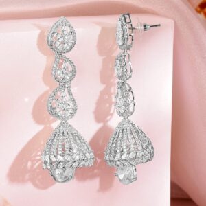 Earrings : These rhodium-plated statement earrings feature a dazzling array of cubic zirconia, designed in an elegant drop style, perfect for enhancing any look with sophistication and sparkle. Occasion : Bring your style to a whole new level with this handcrafted piece of jewellery. When you’re celebrating a special Occasion : – a birthday, wedding, or personal milestone – this piece adds that extra something that makes us feel special and looking our best. Material : & Care Dimension : Length : 7.5CM, Width: 2CM Material :Alloy Care Label : It is advisable to avoid contact with water and organic chemicals i.e. perfume sprays. Store jewellery in airtight box. After use, wipe the jewellery with soft cotton cloth.