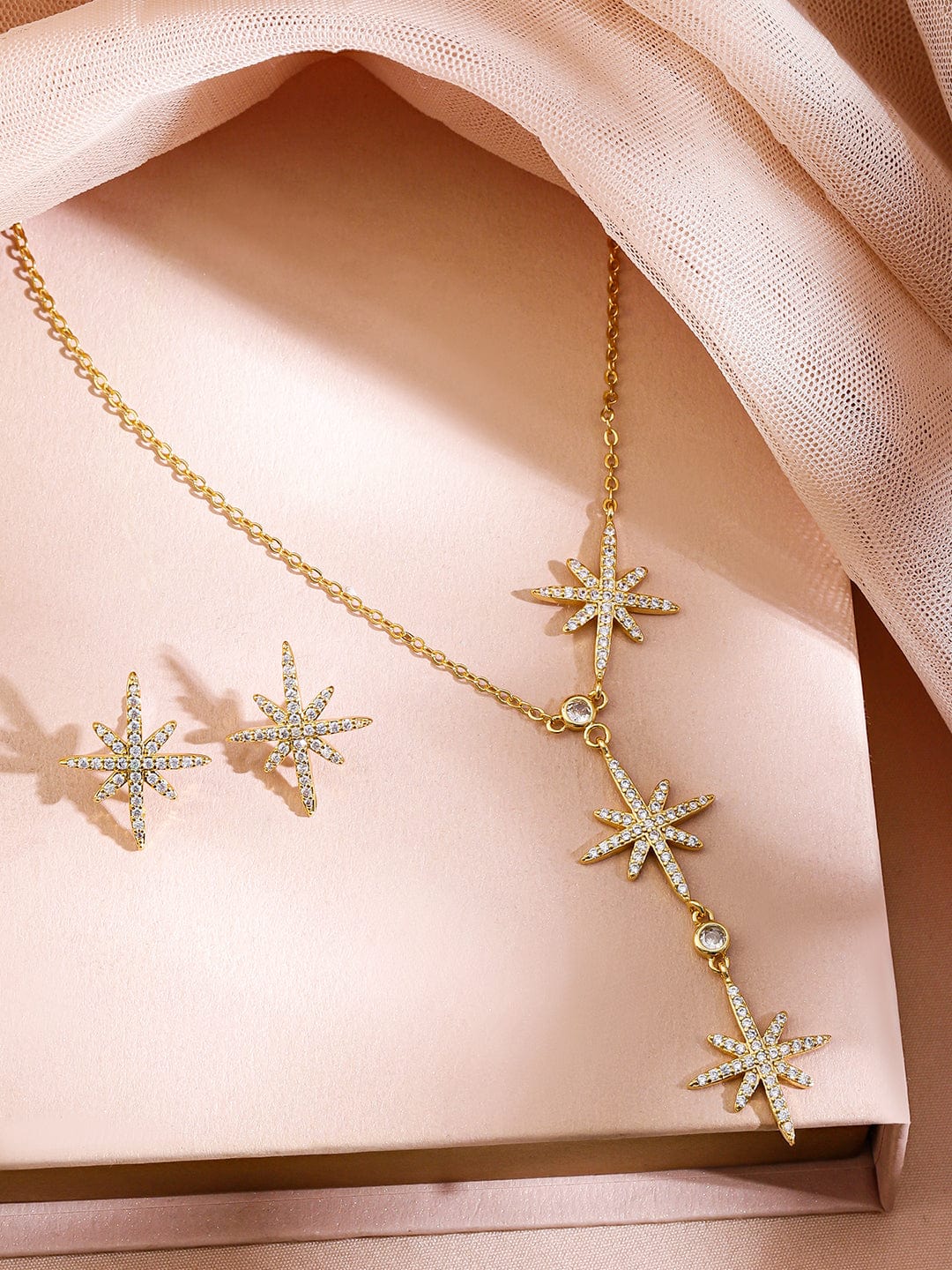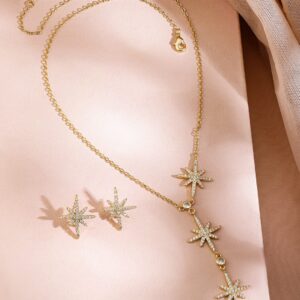 Pendent Set : Elevate your style with this rhodium-plated necklace set featuring a sleek V-shaped pendant design and matching earrings. Studded with dazzling cubic zirconia stones, this set exudes a contemporary charm, perfect for modern looks. Occasion : Bring your style to a whole new level with this handcrafted piece of jewelry. When you’re celebrating a special Occasion : – a birthday, festive, parties, or personal milestone – this piece adds that extra something that makes us feel special and looking our best. Material & Care Dimension : Length : Necklace : 26 cm, Earrings : 1.4 cm Width : Necklace : 1.4 cm, Earrings : 1.4 cm Weight : 6.10 Gram Material :Brass Net Quantity : 1 Necklace & 1 Pair of Earrings Care Label : It is advisable to avoid contact with water and organic chemicals i.e. perfume sprays. Store jewellery in airtight box. After use, wipe the jewellery with soft cotton cloth.