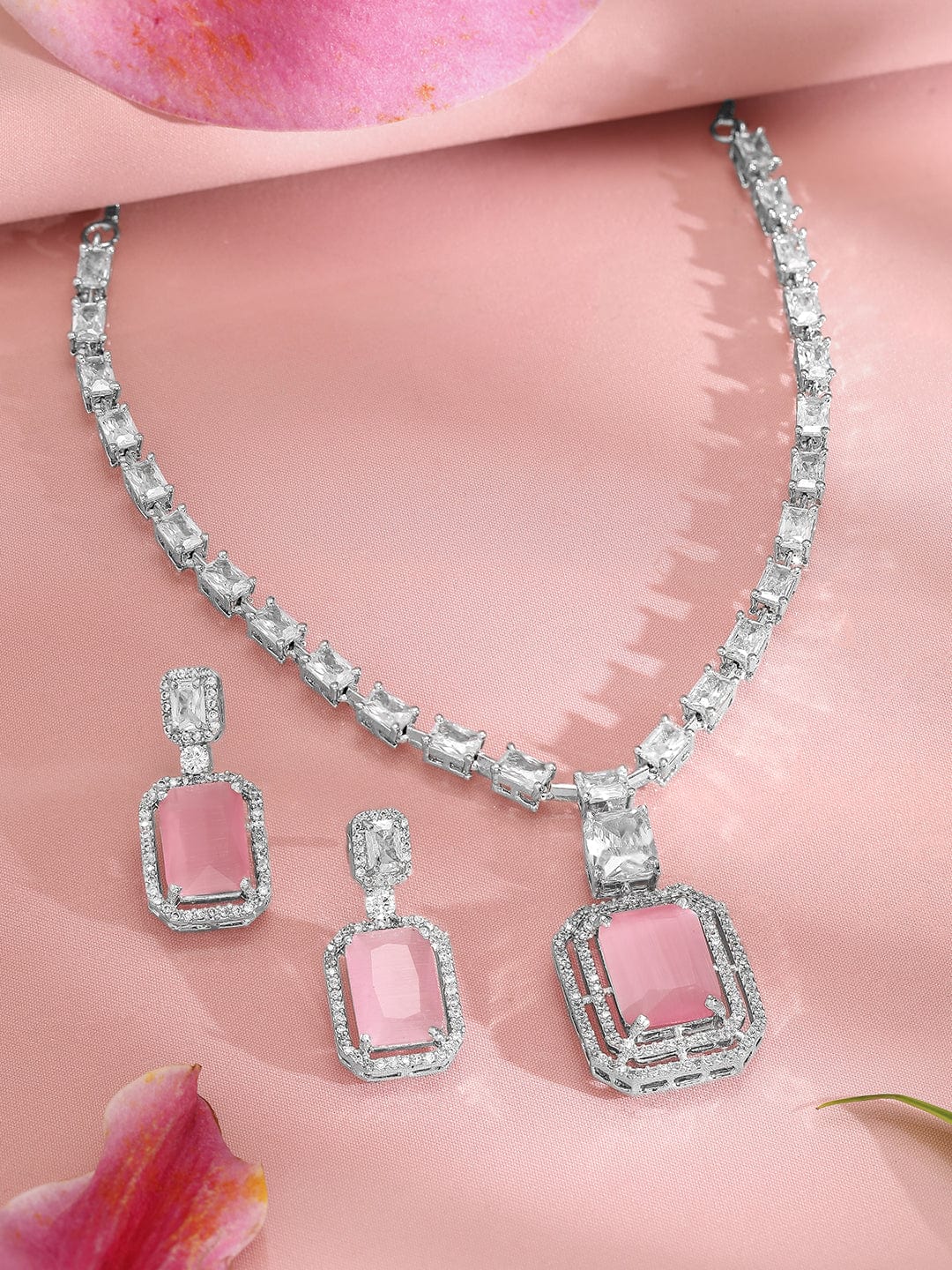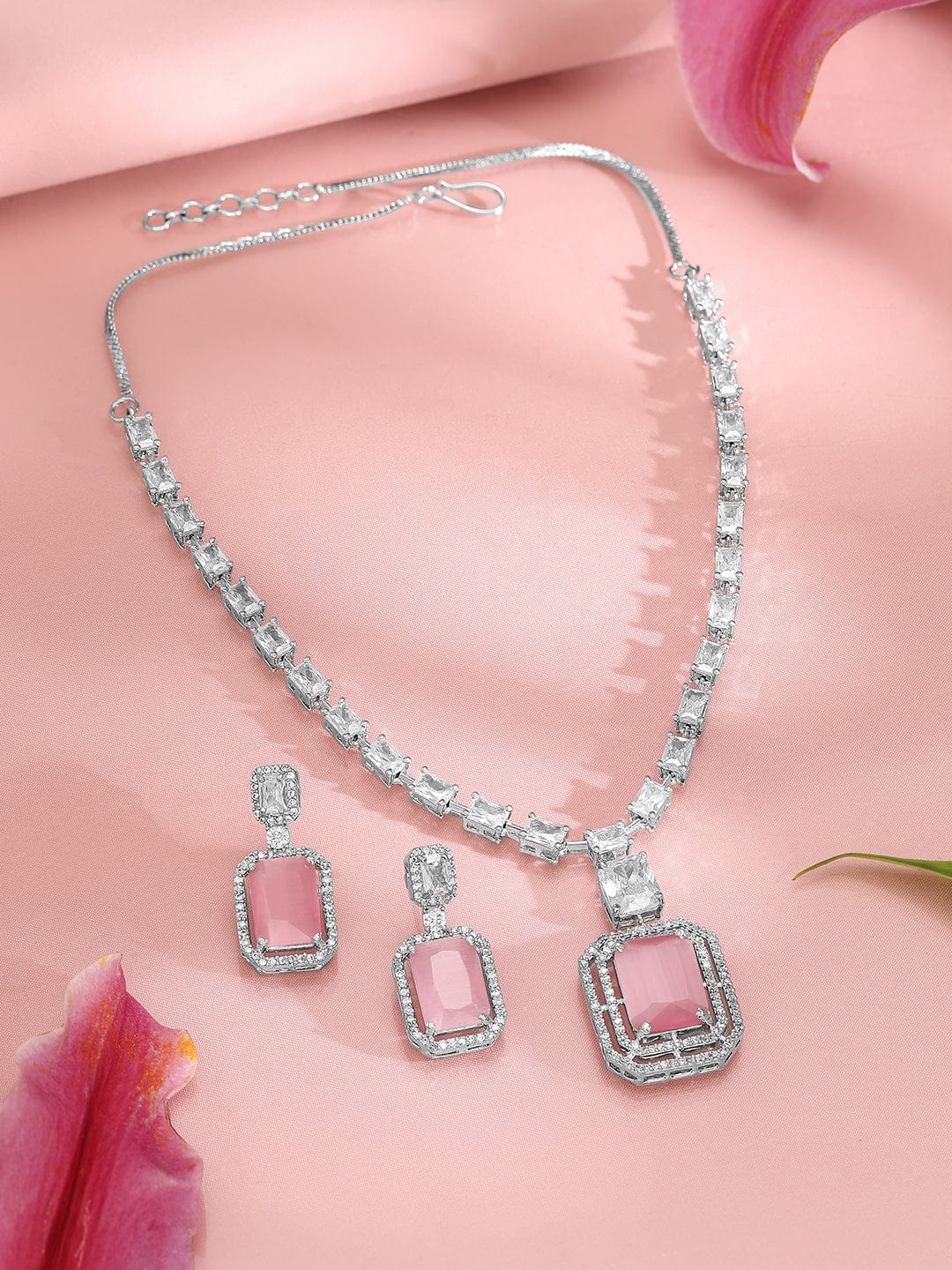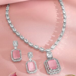 Necklace Set : Discover elegance with the Rhodium-Plated design, meticulously crafted for those who cherish luxury. This piece features precious stones for an eye-catching sparkle, making it perfect for special occasions. With a blend of high-quality materials and exquisite design, it promises both durability and style. The versatile look can complement a variety of outfits, adding a touch of sophistication. A must-have for enhancing your accessory collection with timeless elegance. Occasion : Bring your style to a whole new level with this handcrafted piece of jewellery. When you’re celebrating a special Occasion : – a birthday, wedding, or personal milestone – this piece adds that extra something that makes us feel special and looking our best. Material : & Care Dimension : Length : 35 cm / 1.5 cm, Width: 3.5 cm / 2.5 cm Material: Brass Net Weight: 48.3 Gram Net Quantity: 1 Necklace & 1 Pair of Earrings Care Label: It is advisable to avoid contact with water and organic chemicals i.e. perfume sprays. Store jewellery in airtight box. After use, wipe the jewellery with soft cotton cloth.
