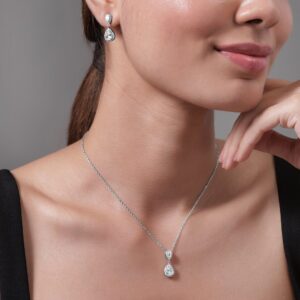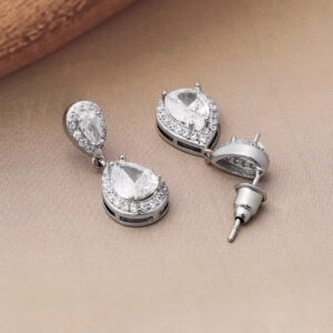 Be the first to review “Rhodium Plated CZ Studded Teardrop Necklace Set – Silver”