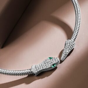 Rhodium Plated Demi Fine Snake Motif Statement Choker with White & Emerald Stones – Silver