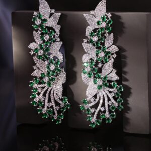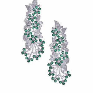 Embrace the opulent allure of these rhodium plated chandelier earrings, adorned with sparkling zirconia stones and vibrant emeralds. The rhodium plating adds a touch of sophistication, while the meticulously placed gemstones exude timeless elegance. Material & Care Dimension : 3.5 cm Material: Brass Net Weight: 31.65 Gram Net Quantity: 1 Pair of Earrings Care Label: It is advisable to avoid contact with water and organic chemicals i.e. perfume sprays. Store jewellery in airtight box. After use, wipe the jewellery with soft cotton cloth.